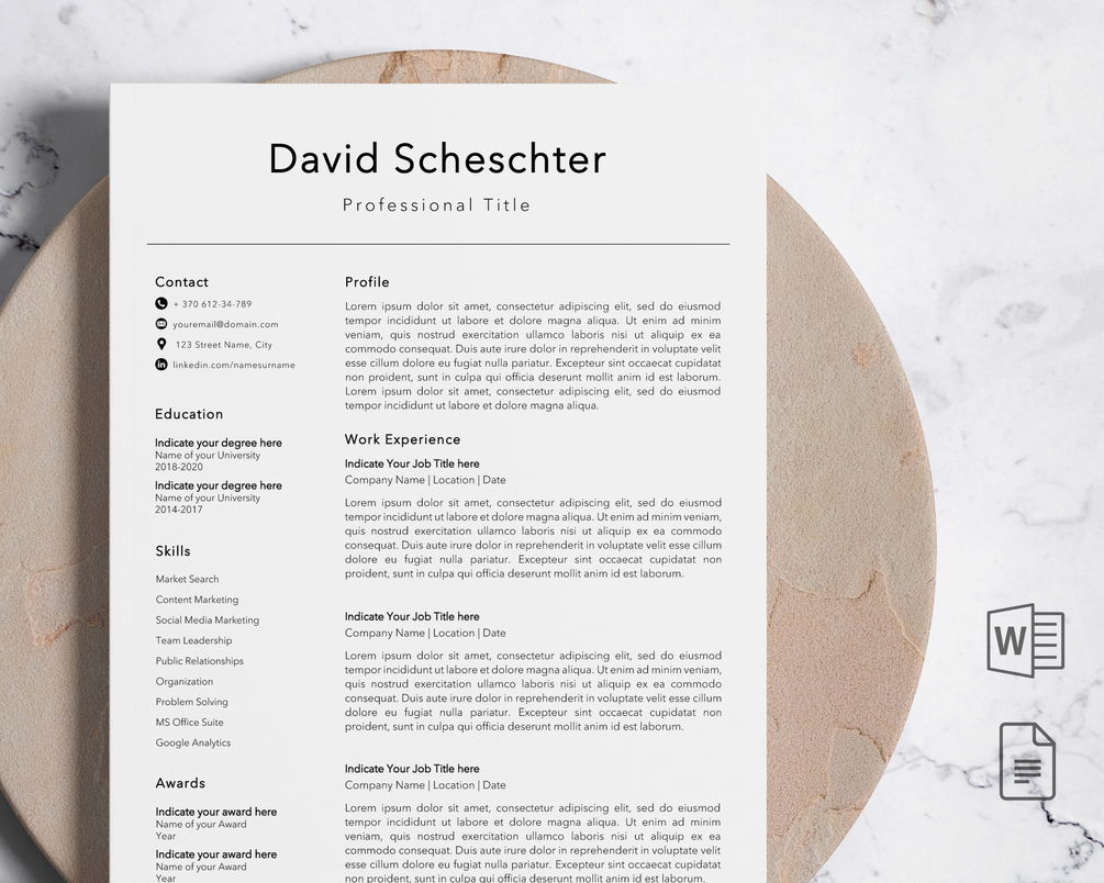 This minimalist yet modern resume template for Word and Google Pages will quickly transform your resume, so that you will be able to feel confident and show your key skills while applying to your dream job.